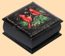 Каталог » Шкатулки » Шкатулки Палех (лаковая миниатюра) » Шкатулка Палех Кардиналы (квадратная)