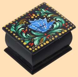 Каталог » Шкатулки » Шкатулки Палех (лаковая миниатюра) » Шкатулка Палех На листочках (мини)