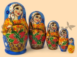 Каталог » Матрёшки » Матрёшки 5-ти местные (цветы, ягоды, узоры) » Матрёшка Девушка с клубничной корзиной (5 мест)