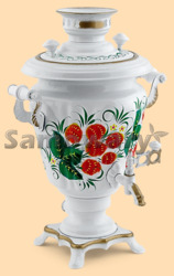 Каталог » Самовары ЭЛЕКТРИЧЕСКИЕ » Самовары электрические на 3л (расписные - цветы и ягоды) » Самовар электрический Клубника на белом (3л)