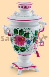 Каталог » Самовары ЭЛЕКТРИЧЕСКИЕ » Самовары электрические на 3л (расписные - цветы и ягоды) » Самовар электрический Розы радужные на белом (3л)
