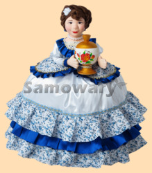 Кукла на чайник для самовара Агафья (синяя, фарфор) (арт. 40792)