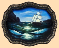 Каталог » Подносы Жостово » Подносы Жостово фигурные » Поднос жостовский Таинственное море (фигурный)