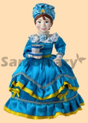 Кукла на чайник для самовара Купчиха с чашкой (бирюзовая, фарфор) (арт. 41142)