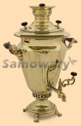 Самовар: - объём 6 л - антикварный самовар в форме рюмки фабрики Воронцова - материал: полированная латунь - растапливается с помощью дров или шишек - информационный сертификат об истории самоварной фабрики, на которой изготовлен самовар - Вес самовара - 7,5 кг