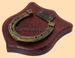 Размер медальона 19 на 22 см Медальон для подковы изготовлен из бука, покрашен под вишню и покрыт матовым лаком Размер подковы 13 на 13 см Подкова штампованная, покрыта патиной с золотом Размер таблички 4 на 7 см Табличка кованная, покрыта патиной с золотом Вес подковы - 900 гр. Производитель Россия