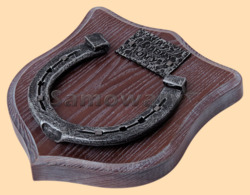 Размер медальона 19 на 22 см Медальон для подковы изготовлен из бука, покрашен под орех и покрыт матовым лаком Размер подковы 13 на 13 см Подкова штампованная, покрыта патиной с серебром Размер таблички 4 на 7 см Табличка кованная, покрыта патиной с серебром Вес подковы - 900 гр. Производитель Россия