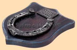 Размер медальона 19 на 22 см Медальон для подковы изготовлен из бука, покрашен под венге и покрыт матовым лаком Размер подковы 13 на 13 см Подкова штампованная, покрыта патиной с серебром Размер таблички 4 на 7 см Табличка кованная, покрыта патиной с серебром Вес подковы - 900 гр. Производитель Россия