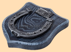 Размер медальона 19 на 22 см Медальон для подковы изготовлен из бука, покрашен под венге и покрыт матовым лаком Размер подковы 13 на 13 см Подкова штампованная, покрыта патиной с серебром Размер таблички 4 на 7 см Табличка кованная, покрыта патиной с серебром Вес подковы - 900 гр. Производитель Россия