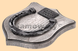 Размер медальона 19 на 22 см Медальон для подковы изготовлен из бука, покрашен под светлое дерево и покрыт матовым лаком Размер подковы 13 на 13 см Подкова штампованная, покрыта патиной с серебром Размер таблички 4 на 7 см Табличка кованная, покрыта патиной с серебром Вес подковы - 900 гр. Производитель Россия