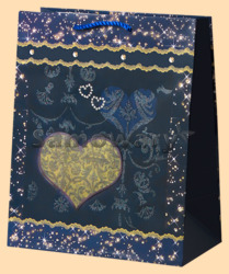 Каталог » Подарочные пакеты » Подарочные пакеты бумажные от 30 до 40 см » Пакет Бриллиантовое сердце (26 на 32 см)