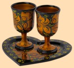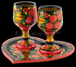 Набор фужеров Хохлома Любовь (2 фужера и поднос, 100 мл) (арт. 42159)