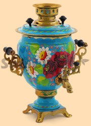 Каталог » Самовары ЭЛЕКТРИЧЕСКИЕ » Самовары электрические на 3л (расписные - цветы и ягоды) » Самовар электрический Маки и ромашки на голубом (3л)
