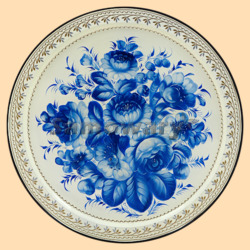 Каталог » Подносы Жостово » Подносы Жостово круглые » Поднос жостовский Гжельские цветы №2 (круг большой)