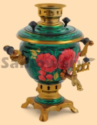 Самовар: - объем 2 литра - высота самовара 32 см - ширина самовара по ручки 30 см - материал: латунь - расписан вручную, покрыт лаком - мощность ТЭНа 1 кВт, время закипания 18-20 минут - вес самовара 2,3 кг - производитель Россия (Тула)