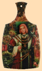 Высота 30 см, ширина 17 см Цветной красочный рисунок, сверху покрыт лаком Материал доски: дерево Толщина разделочной доски 8 мм Производитель Россия