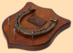 Размер медальона 19 на 22 см, с дополнительными подвесами чтобы вешать ключи (ключница) Медальон для подковы изготовлен из бука, покрашен под дуб и покрыт матовым лаком Размер подковы 13 на 13 см Подкова штампованная, покрыта патиной с медью Размер таблички 4 на 7 см Табличка кованная, покрыта патиной с медью Вес подковы - 900 гр. Производитель Россия