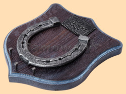 Размер медальона 19 на 22 см, с дополнительными подвесами чтобы вешать ключи (ключница) Медальон для подковы изготовлен из бука, покрашен под венге и покрыт матовым лаком Размер подковы 13 на 13 см Подкова штампованная, покрыта патиной с серебром Размер таблички 4 на 7 см Табличка кованная, покрыта патиной с серебром Вес подковы - 900 гр. Производитель Россия