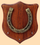 Размер медальона 19 на 22 см, с дополнительными подвесами чтобы вешать ключи (ключница) Медальон для подковы изготовлен из бука, покрашен под вишню и покрыт матовым лаком Размер подковы 13 на 13 см Подкова штампованная, покрыта патиной с золотом Вес подковы - 850 гр. Производитель Россия