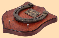 Размер медальона 19 на 22 см, с дополнительными подвесами чтобы вешать ключи (ключница) Медальон для подковы изготовлен из бука, покрашен под вишню и покрыт матовым лаком Размер подковы 13 на 13 см Подкова штампованная, покрыта патиной с золотом Размер таблички 4 на 7 см Табличка кованная, покрыта патиной с золотом Вес подковы - 900 гр. Производитель Россия