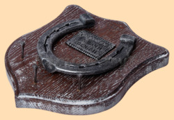 Размер медальона 19 на 22 см, с дополнительными подвесами чтобы вешать ключи (ключница) Медальон для подковы изготовлен из бука, покрашен под орех и покрыт матовым лаком Размер подковы 13 на 13 см Подкова штампованная, покрыта патиной с серебром Размер таблички 4 на 7 см Табличка кованная, покрыта патиной с серебром Вес подковы - 900 гр. Производитель Россия