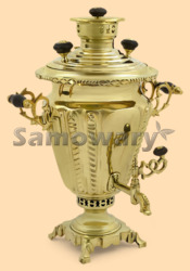 Самовар: - объём 5 литров - антикварный в форме рюмки Тулпромторг - материал: полированная латунь - растапливается с помощью дров или шишек - информационный сертификат об истории самоварной фабрики, на которой изготовлен самовар - вес самовара - 5,3 кг