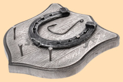 Размер медальона 19 на 22 см, с дополнительными подвесами чтобы вешать ключи (ключница) Медальон для подковы изготовлен из бука, покрашен под светлое дерево и покрыт матовым лаком Размер подковы 13 на 13 см Подкова штампованная, покрыта патиной с серебром В качестве декоративного элемента использован настоящий рыболовный крючёк Вес подковы - 850 гр. Производитель Россия