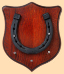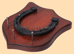Размер медальона 19 на 22 см, с дополнительными подвесами чтобы вешать ключи (ключница) Медальон для подковы изготовлен из бука, покрашен под вишню и покрыт матовым лаком Размер подковы 13 на 13 см Подкова штампованная, с чернением Вес подковы - 850 гр. Производитель Россия