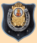Размер медальона 19 на 22 см, с дополнительными подвесами чтобы вешать ключи (ключница) Медальон для подковы изготовлен из бука, покрашен под венге и покрыт матовым лаком Размер подковы 13 на 13 см Подкова штампованная, покрыта патиной с серебром По центру подковы размещена деревянная табличка размером 8 на 13 см с ликом святого и молитвой на Благословение дома Вес подковы - 850 гр. Производитель Россия