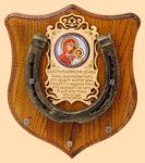 Подкова Казанская Божья Матерь (цвет медальона дуб, подкова патина с золотом, ключница) (арт. 43819)