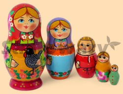 Каталог » Матрёшки » Матрёшки 5-ти местные (сюжетные) » Матрёшка Девушка с курицей (5 мест)