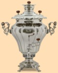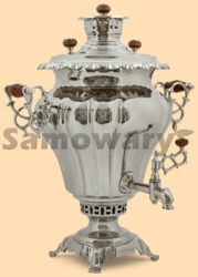 Самовар: - объем самовара 7 литров - антикварный самовар в форме вазы - на самоваре стоит литая коронка - материал: никелированная латунь (покрытие не боится воды) - растапливается с помощью дров или шишек - информационный сертификат об истории самоварной фабрики, на которой изготовлен самовар - производитель Тула