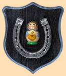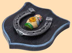 Размер медальона 19 на 22 см Медальон для подковы изготовлен из бука, покрашен под венге и покрыт матовым лаком Размер подковы 13 на 13 см Подкова штампованная, покрыта патиной с серебром По центру подковы размещена декоративная накладка в виде матрёшки с традиционным русским народным сюжетом Вес подковы - 850 гр. Производитель Россия