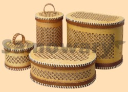 В наборе: туес большой, туес малый, короб, батонница Большой туес - высота 20 см, 26 с ручкой, диаметр 13 см Малый туес - высота 9 см, 15 см с ручкой, диаметр 23 см Короб - 27 на 18 см, высота 21 см Батонница - 27 на 18 см, высота 9,5 см Материал береста Производитель Росссия