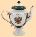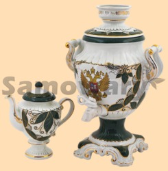 Самовар в наборе фарфоровый Герб зелёный (5л, деколь) (арт. 45206)