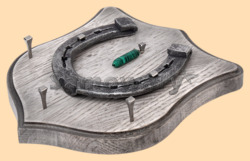Размер медальона 19 на 22 см, с дополнительными подвесами чтобы вешать ключи (ключница) Медальон для подковы изготовлен из бука, покрашен под светлое дерево и покрыт матовым лаком Размер подковы 13 на 13 см Подкова штампованная, покрыта патиной с серебром В качестве декоративного элемента использована подвеска с малахитом Вес подковы - 850 гр. Производитель Россия