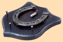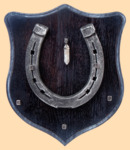 Размер медальона 19 на 22 см, с дополнительными подвесами чтобы вешать ключи (ключница) Медальон для подковы изготовлен из бука, покрашен под венге и покрыт матовым лаком Размер подковы 13 на 13 см Подкова штампованная, покрыта патиной с серебром В качестве декоративного элемента использована подвеска с кахалоном Вес подковы - 850 гр. Производитель Россия