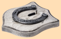 Размер медальона 19 на 22 см Медальон для подковы изготовлен из бука, покрашен под светлое дерево и покрыт матовым лаком Размер подковы 13 на 13 см Подкова штампованная, покрыта патиной с серебром В качестве декоративного элемента использована подвеска с чёрным агатом Вес подковы - 850 гр. Производитель Россия