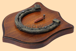 Размер медальона 19 на 22 см Медальон для подковы изготовлен из бука, покрашен под дуб и покрыт матовым лаком Размер подковы 13 на 13 см Подкова штампованная, покрыта патиной с золотом В качестве декоративного элемента использована подвеска с камнем "золотой песок" Вес подковы - 850 гр. Производитель Россия