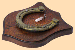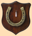 Размер медальона 19 на 22 см Медальон для подковы изготовлен из бука, покрашен под дуб и покрыт матовым лаком Размер подковы 13 на 13 см Подкова штампованная, покрыта патиной с золотом В качестве декоративного элемента использована подвеска с розовым кварцем Вес подковы - 850 гр. Производитель Россия
