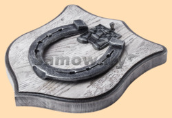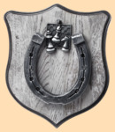 Размер медальона 19 на 22 см Медальон для подковы изготовлен из бука, покрашен под светлое дерево и покрыт матовым лаком Размер подковы 13 на 13 см Подкова штампованная, покрыта патиной с серебром В качестве декоративного элемента использована шахматная медаль (серебро) Вес подковы - 850 гр. Производитель Россия