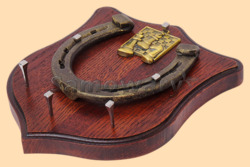 Размер медальона 19 на 22 см, с дополнительными подвесами чтобы вешать ключи (ключница) Медальон для подковы изготовлен из бука, покрашен под вишню и покрыт матовым лаком Размер подковы 13 на 13 см Подкова штампованная, покрыта патиной с золотом В качестве декоративного элемента использована шахматная медаль (золото) Вес подковы - 850 гр. Производитель Россия