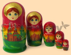 Каталог » Матрёшки » Матрёшки 5-ти местные (сюжетные) » Матрёшка Летний собор (красный платок, большая, 5 мест)