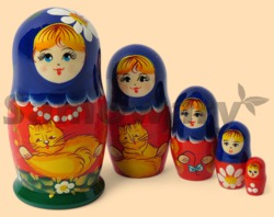 Каталог » Матрёшки » Матрёшки 5-ти местные (сюжетные) » Матрёшка Предметная с котом (малая, 5 мест)