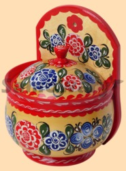 Городецкая роспись — русский народный художественный промысел. Существует с середины XIX века в районе города Городец. Яркая, лаконичная городецкая роспись (жанровые сцены, фигурки коней, петухов, цветочные узоры), выполненная свободным мазком с белой и черной графической обводкой, украшала прялки, мебель, ставни, двери.