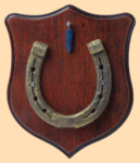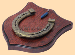Размер медальона 19 на 22 см Медальон для подковы изготовлен из бука, покрашен под вишню и покрыт матовым лаком Размер подковы 13 на 13 см Подкова штампованная, покрыта патиной с золотом В качестве декоративного элемента использована подвеска с афганским лазуритом Вес подковы - 850 гр. Производитель Россия
