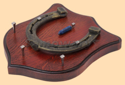 Размер медальона 19 на 22 см, с дополнительными подвесами чтобы вешать ключи (ключница) Медальон для подковы изготовлен из бука, покрашен под вишню и покрыт матовым лаком Размер подковы 13 на 13 см Подкова штампованная, покрыта патиной с золотом В качестве декоративного элемента использована подвеска с афганским лазуритом Вес подковы - 850 гр. Производитель Россия