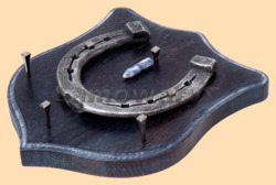 Размер медальона 19 на 22 см, с дополнительными подвесами чтобы вешать ключи (ключница) Медальон для подковы изготовлен из бука, покрашен под венге и покрыт матовым лаком Размер подковы 13 на 13 см Подкова штампованная, покрыта патиной с серебром В качестве декоративного элемента использована подвеска с лазуритом Вес подковы - 850 гр. Производитель Россия