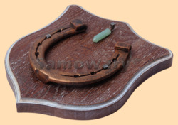 Размер медальона 19 на 22 см Медальон для подковы изготовлен из бука, покрашен под орех и покрыт матовым лаком Размер подковы 13 на 13 см Подкова штампованная, покрыта патиной с медью В качестве декоративного элемента использована подвеска из нефрита Вес подковы - 850 гр. Производитель Россия