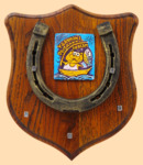 Размер медальона 19 на 22 см, с дополнительными подвесами чтобы вешать ключи (ключница) Медальон для подковы изготовлен из бука, покрашен под дуб и покрыт матовым лаком Размер подковы 13 на 13 см Подкова штампованная, покрыта патиной с золотом По центру подковы размещена декоративная керамическая вставка Вес подковы - 900 гр. Производитель Россия